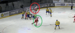 When something as a simple as a jersey from less than possibly 20 years ago can’t be 100% tracked you have a problem. There is also a problem of the IIHF not being best at tracking stats for lower tournaments. For example at the recent U20 World Championships Division 1B, on Poland’s 4-2 goal Kamil Walega carries the puck into the zone and then before goes around the net, he throws the puck to in front of the net to Sebastian Brynkus who snipes it for the insurance goal. The IIHF gave this goal to Kamil Walega with an assist to Brynkus. Here is clear footage and some photo proof that the goal is Brynkus’. In the photo; Black circle = puck, Green = Brynkus, Red = Walega