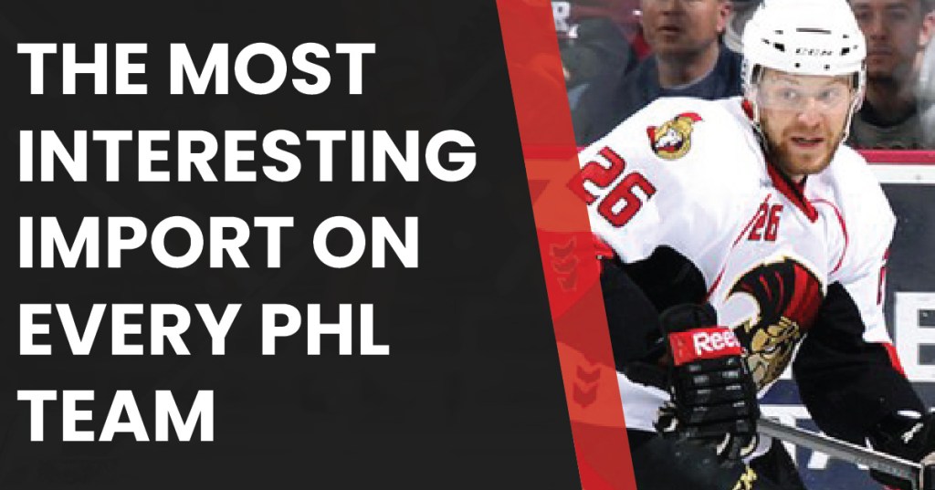 Every year there are fresh faces in the PHL. Sometimes import signings are big-name players with NHL or KHL experience, while others are from lower North American or European minor leagues looking to take the next step in their careers. Some become team staples, while others are gone in less than a month. I always enjoy checking out every import signing in the PHL. Today I wanted to look at each team’s most interesting new foreign player—keyword interesting, not the most impactful or best signing.