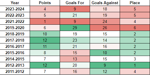There are a few factors that led to this. Some lift the team as to why they stay up in division one, while others drag the team down from ever reaching group A.